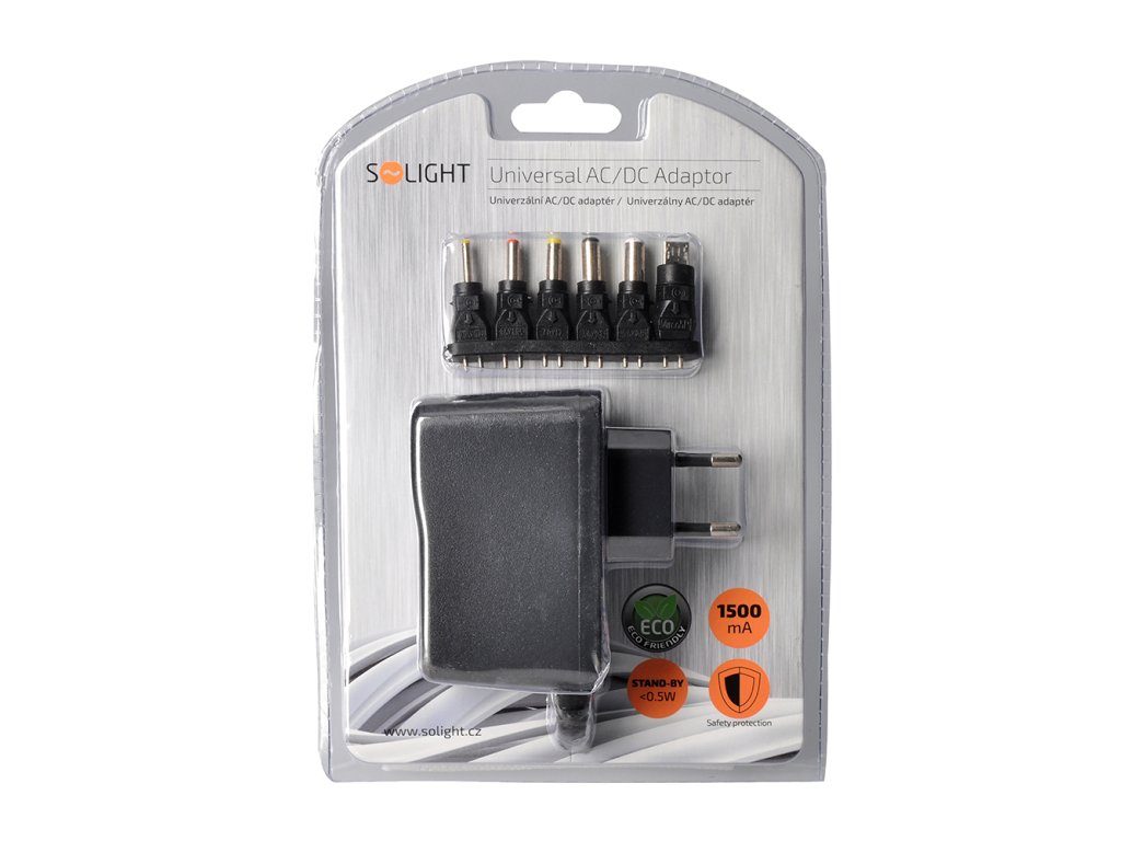 Solight univerzální síťový adaptér 1500mA, stabilizovaný, výměnné konektory