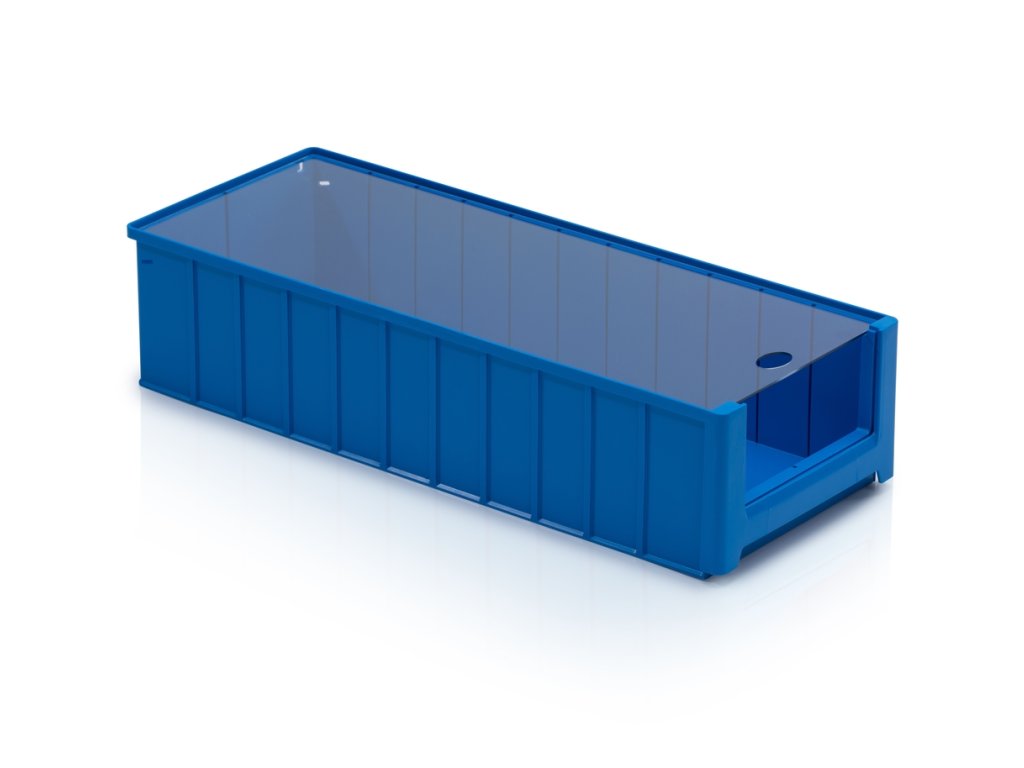 Praktické průhledné víko chrání obsah regálového boxu před prachem, nečistotami a poškozením. Umožňuje snadné otevření a přehlednost bez nutnosti sejmutí.