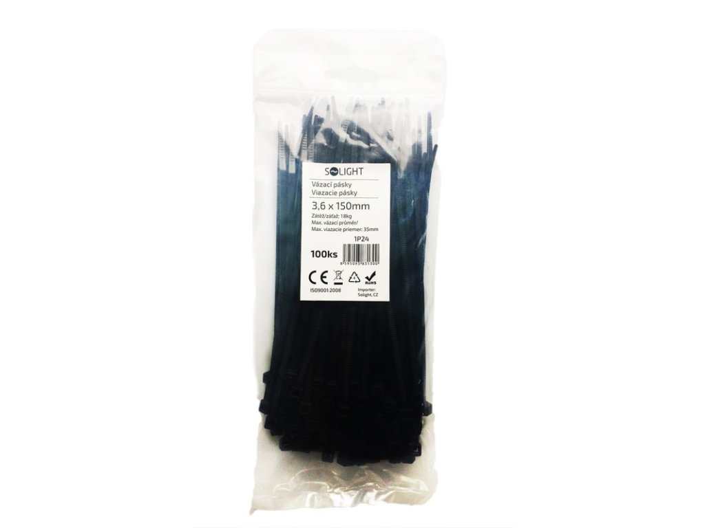 Solight vázací nylonové pásky, 3,6 x 150mm, černá, 100ks