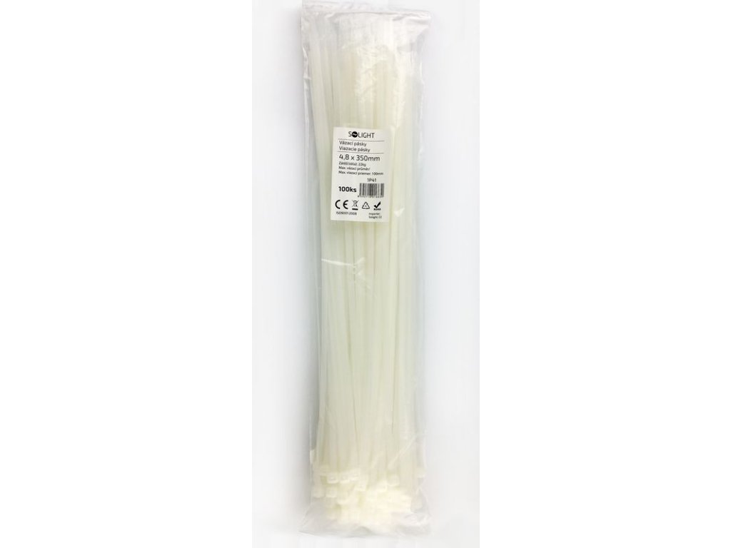 Solight vázací nylonové pásky, 4,8 x 350mm, natural, 100ks