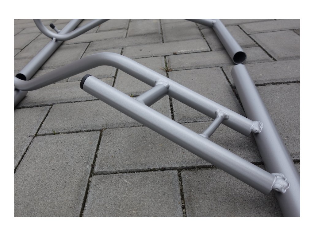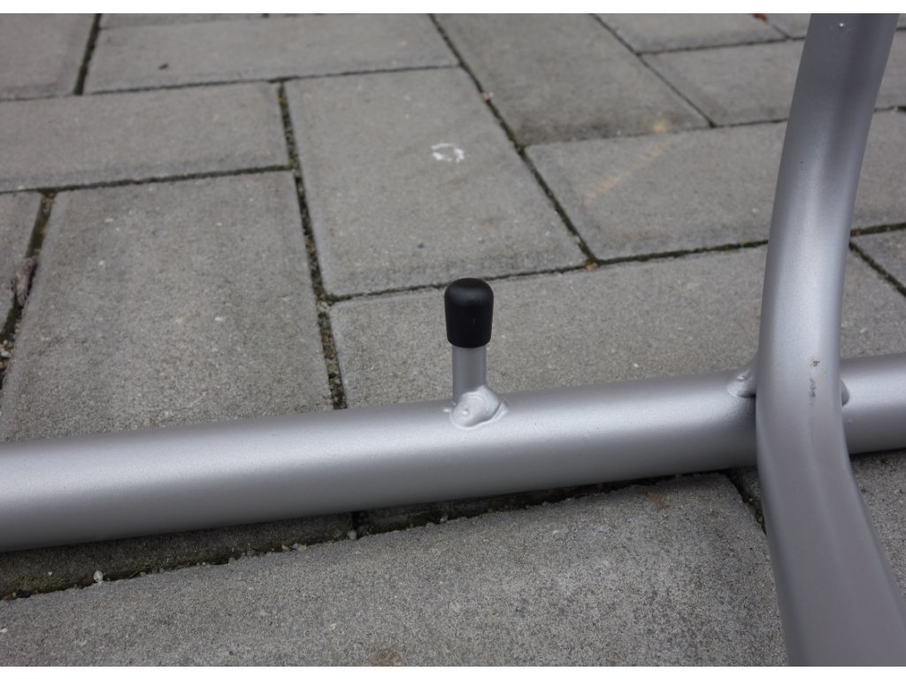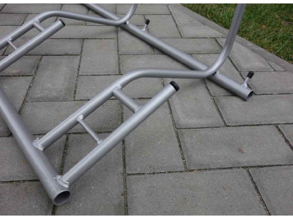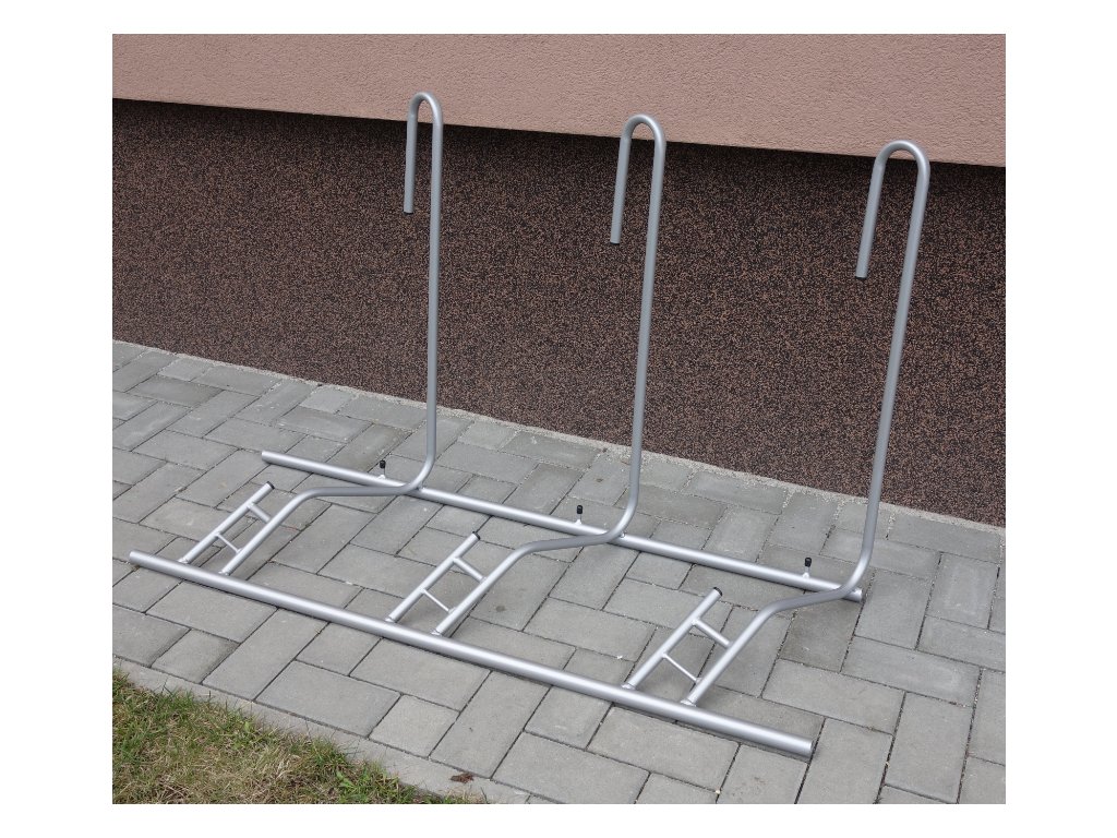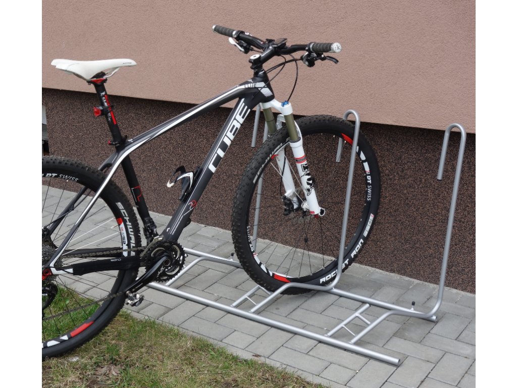 Stojan pro ustavení jízdních kol určený zejména pro interiérové použití, ideální pro vystavení kol v obchodech a prodejnách. Konstrukce je vyrobena z ocelových kulatin s povrchovou úpravou komaxit. Kulatiny jsou zakončeny plastovými záslepkami. Oblouky jsou přivařeny k základovému rámu.