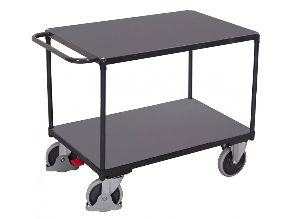 Policový vozík se dvěma policemi vhodný především pro manipulaci s materiálem a předměty ve skladech, provozech.