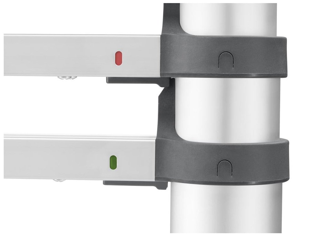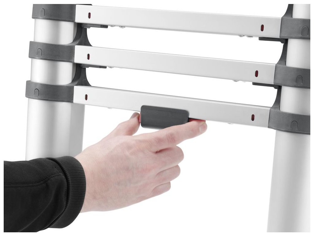 odjištění umožňuje jednoduché a bezpečné vysunutí žebříku Díky bezpečnému odstupu příčlí neexistuje nebezpečí přiskřípnutí. Snadná rozpoznatelnost stavu zajištění žebříku díky barevné indikaci zajištění na každém příčli. Pogumované hrany doléhající na stěny.