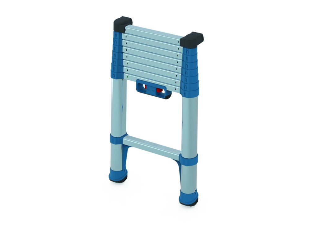 Lehký opěrný žebřík pro dům a zahradu i živnost. Výšku žebříku lze individuálně nastavit vysunutím jednotlivých příčlí Jedinečný jednou rukou ovladatelný systém