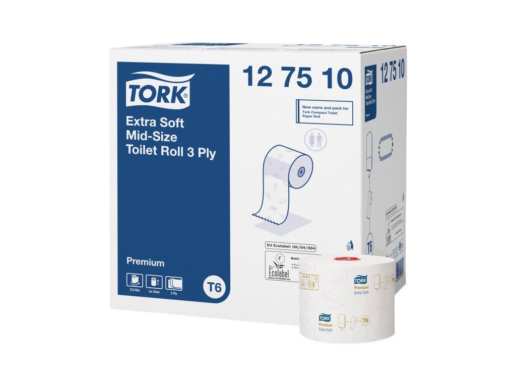 extra jemný toaletní papír TORK ve kvalitě Premium, určený pouze pro zásobníky 557500 a 557508 Systém Tork Mid-size Toilet Roll (T6) zajistí, že nikdy nedojde papír. Je vhodný pro oblasti se střední kapacitou a zařízení, která se zajímají o vzhled a pohodlí. Premiová kvalita: extra jemný toaletní papír. Potištěno elegantním dekorem fialového lístku, který pozvedne Vaší toaletu. Vysoká kapacita: zásobník na dvě roleŽádný odpad na podlaze: prázdné dutinky zůstávají v zásobníku.Znaky Tork Easy Handling: Snadné otevírání, snadné přenášení a snadné složení kartonu.Automatický posun role.Vysoce kvalitní třívrstvá role obsahuje 70 metrů toaletního papíru. Bílý papír není perforovaný, a tím snižuje riziko zaseknutí papíru uvnitř zásobníku. Každá role je chráněna hygienickým obalem, kde najdete jednoduché instrukce k doplňování.