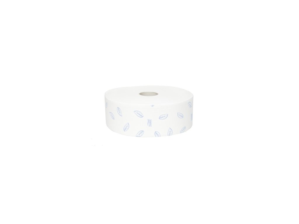 jemný toaletní papír Tork v jumbo roli, 2 vrstvy, 1800 útržků, délka útržku 20cm Systém Tork Jumbo (T1) je vhodný pro vysoce frekventované toalety a umývárny na místech, jako jsou haly, konfereční a nákupní centra atd. Lidé požadují toalety s vysokou úrovní komfortu a spolehlivosti všude tam, kde pracují, baví se či nakupují. Velká kapacita a ekonomická délka role představuje menší nároky na údržbu. Jemný toaletní papír s vysokou bělostí, ražbou pro větší objem a dekorem modrého lístku, který pozvedne Vaši toaletu.Doplňkové parametry