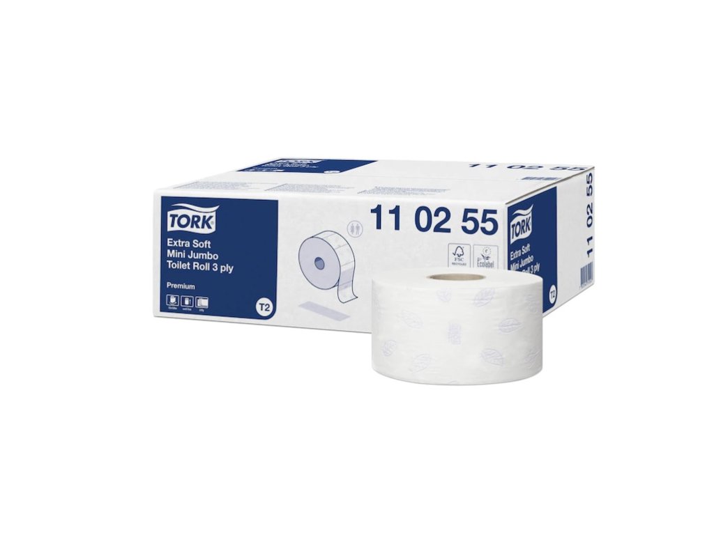 velmi jemný toaletní papír Tork Premium v mini jumbo roli, 600 útržků, délka útržku 20cm Systém Tork Mini Jumbo (T2) je nejvhodnější pro toalety a umývárny se střední až vysokou frekvencí náštěvnosti. Lidé požadují toalety s vysokou úrovní komfortu a spolehlivosti všude tam, kde pracují, baví se či nakupují. Velká kapacita a ekonomická délka role představuje menší nároky na údržbu. Extra jemný toaletní papír s vysokou bělostí, ražbou pro větší objem a dekorem fialového lístku, který pozvedne úroveň a exkluzivitu Vaší toalety.Doplňkové parametry