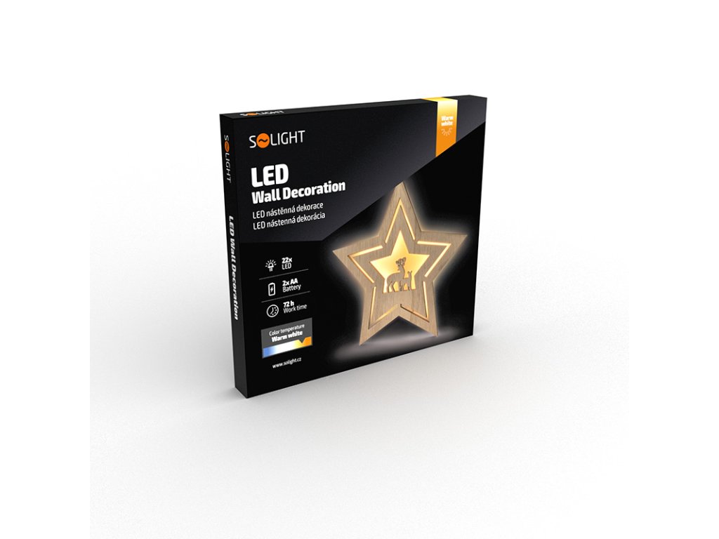 Solight LED nástěnná dekorace vánoční hvězda, 24x LED, 2x AA