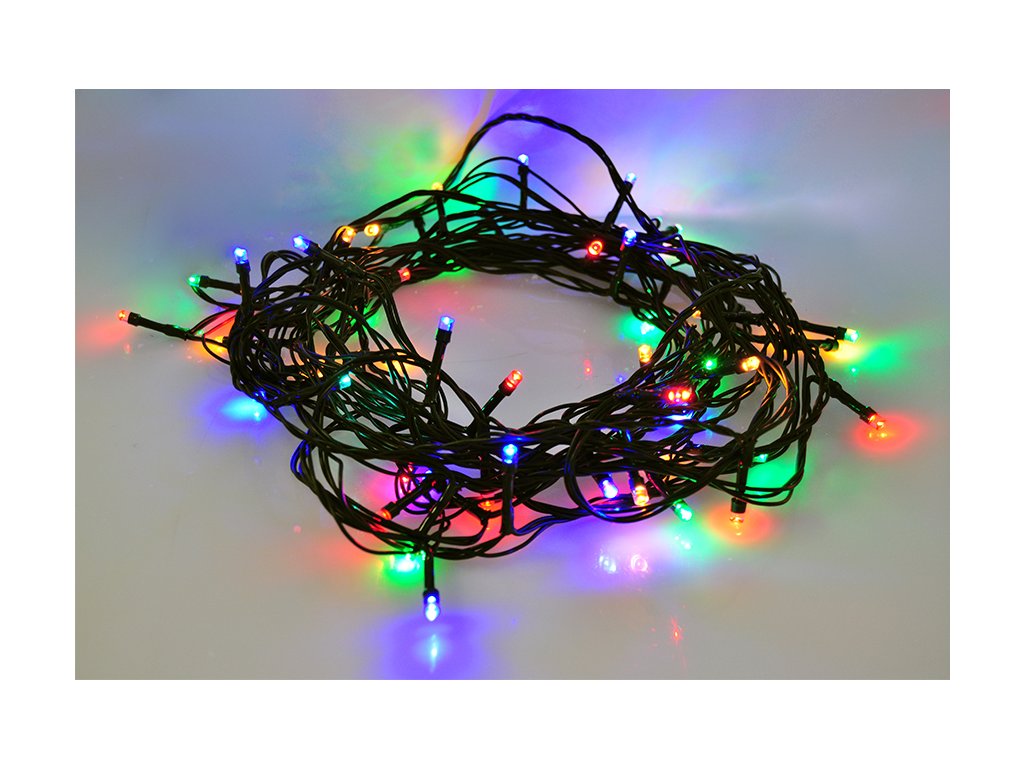 Solight LED venkovní vánoční řetěz, 100 LED, 10m, přívod 3m, 8 funkcí, časovač, IP44, vícebarevný