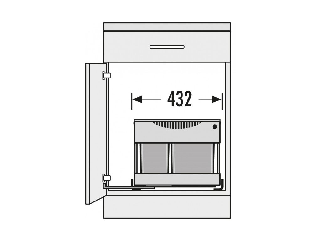 Vestavný odpadkový koš Raumspar tandem: systém třídění odpadků do skříněk s bočními závěsy. Vestavný odpadkový koš určený pro montáž do skříňky od šířky 60 cm s úhlem otevření dvířek 90 stupňů.