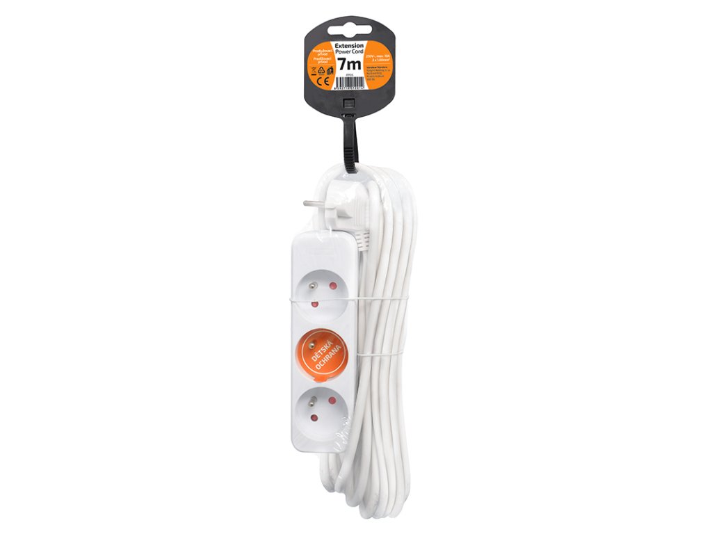 Solight prodlužovací přívod, 3 zásuvky, bílý, 7m