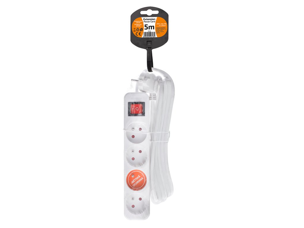 Solight prodlužovací přívod, 4 zásuvky, bílý, vypínač, 5m