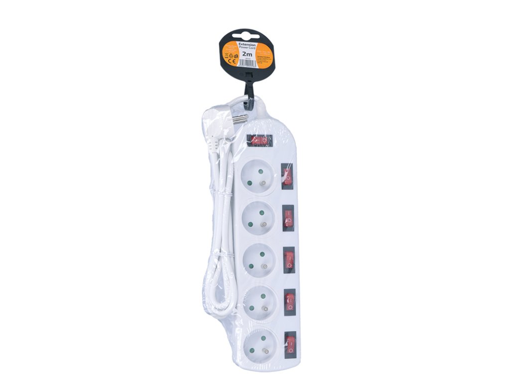 Solight prodlužovací přívod, 5 zásuvek, bílý, 6x vypínač, 2m
