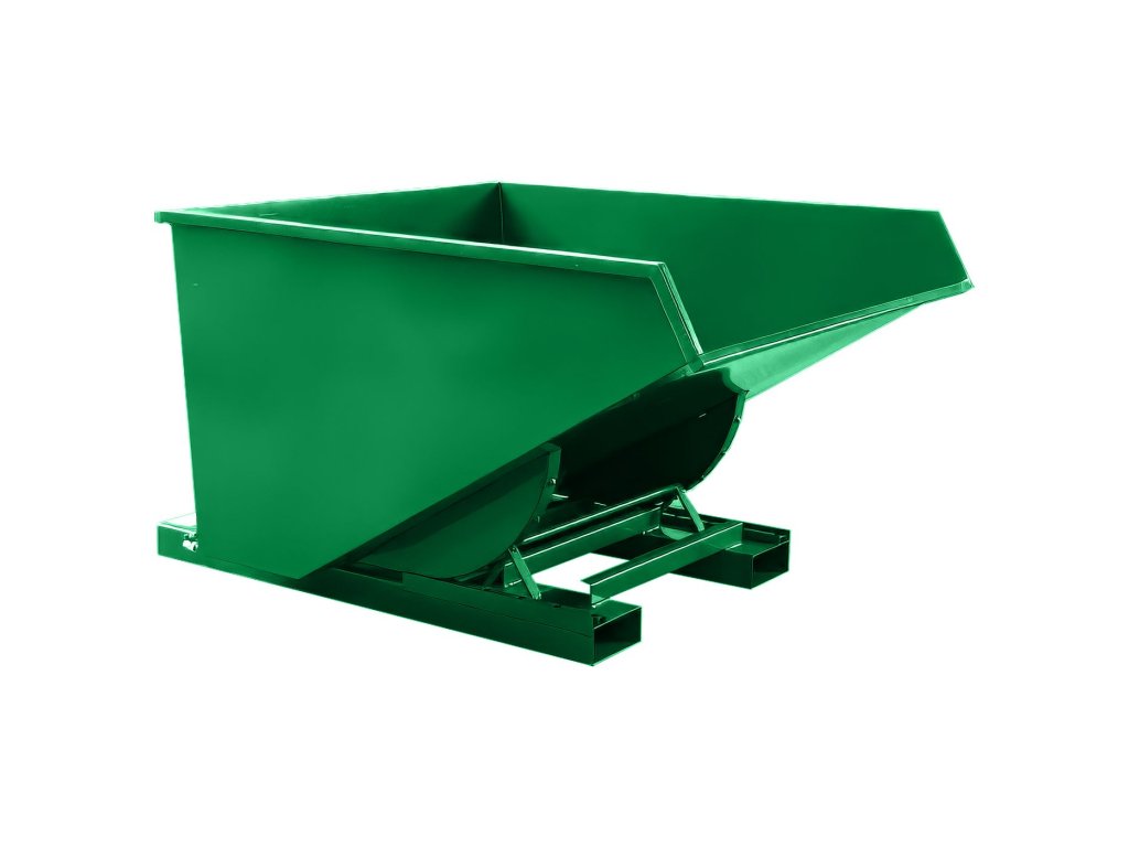 Svařen z plechu tloušťky 3 mm se zesíleným okrajem po obvodu kontejneru. Robustní výklopný mechanismus, který umožňuje vyklopení z místa řidiče vysokozdvižného vozíku pomocí ocelového lanka, po vyklopení se prázdná vana vrátí do původní polohy a automaticky se zajistí. Kontejner musí být při vyklápění z vysokozdvižného vozíku zajištěn řetězem proti nechtěnému sklouznutí z vidlic vozíku. Řetěz i ocelové lanko jsou součástí dodávky. Včetně kapes pro vidlice vysokozdvižných vozíků.