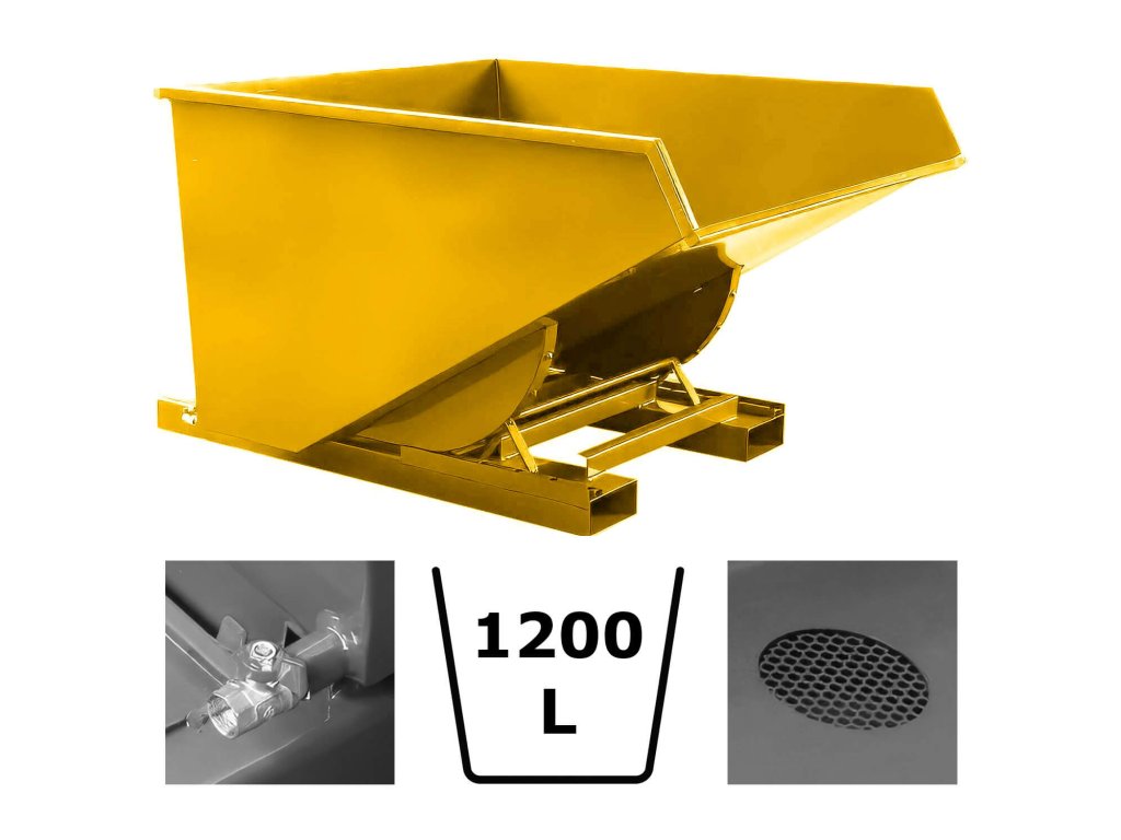 Výklopný kontejner (přepravník) 1200 l, s výpustným kohoutem, žlutá