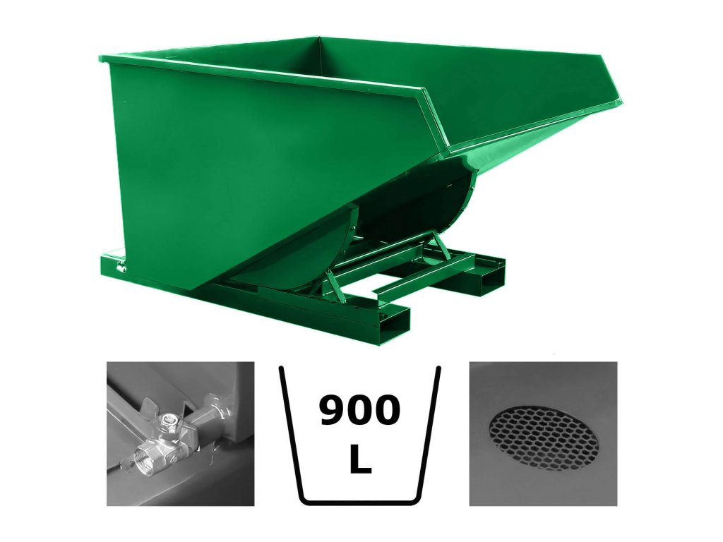 Svařen z plechu tloušťky 3 mm se zesíleným okrajem po obvodu kontejneru. Robustní výklopný mechanismus, který umožňuje vyklopení z místa řidiče vysokozdvižného vozíku pomocí ocelového lanka, po vyklopení se prázdná vana vrátí do původní polohy a automaticky se zajistí. Kontejner musí být při vyklápění z vysokozdvižného vozíku zajištěn řetězem proti nechtěnému sklouznutí z vidlic vozíku. Řetěz i ocelové lanko jsou součástí dodávky. Včetně kapes pro vidlice vysokozdvižných vozíků.