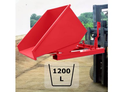 Výklopný kontejner o objemu 1200 litrů, varianta základní (bez výpustného kohoutu), barva červená, délka × šířka × výška: 2140x1070x1150 mm