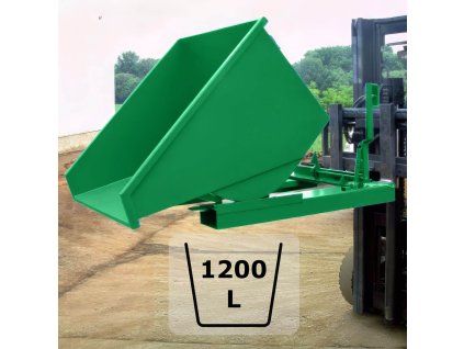 Výklopný kontejner o objemu 1200 litrů, varianta základní (bez výpustného kohoutu), barva zelená, délka × šířka × výška: 2140x1070x1150 mm.