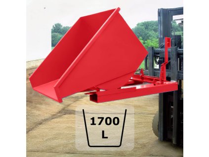 Výklopný kontejner o objemu 1700 litrů, varianta základní (bez výpustného kohoutu), barva červená, délka × šířka × výška: 2140x1570x1150 mm.