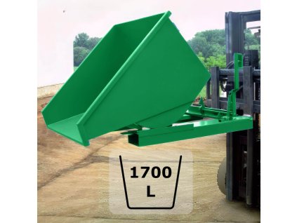 Výklopný kontejner o objemu 1700 litrů, varianta základní (bez výpustného kohoutu), barva zelená, délka × šířka × výška: 2140x1570x1150 mm.