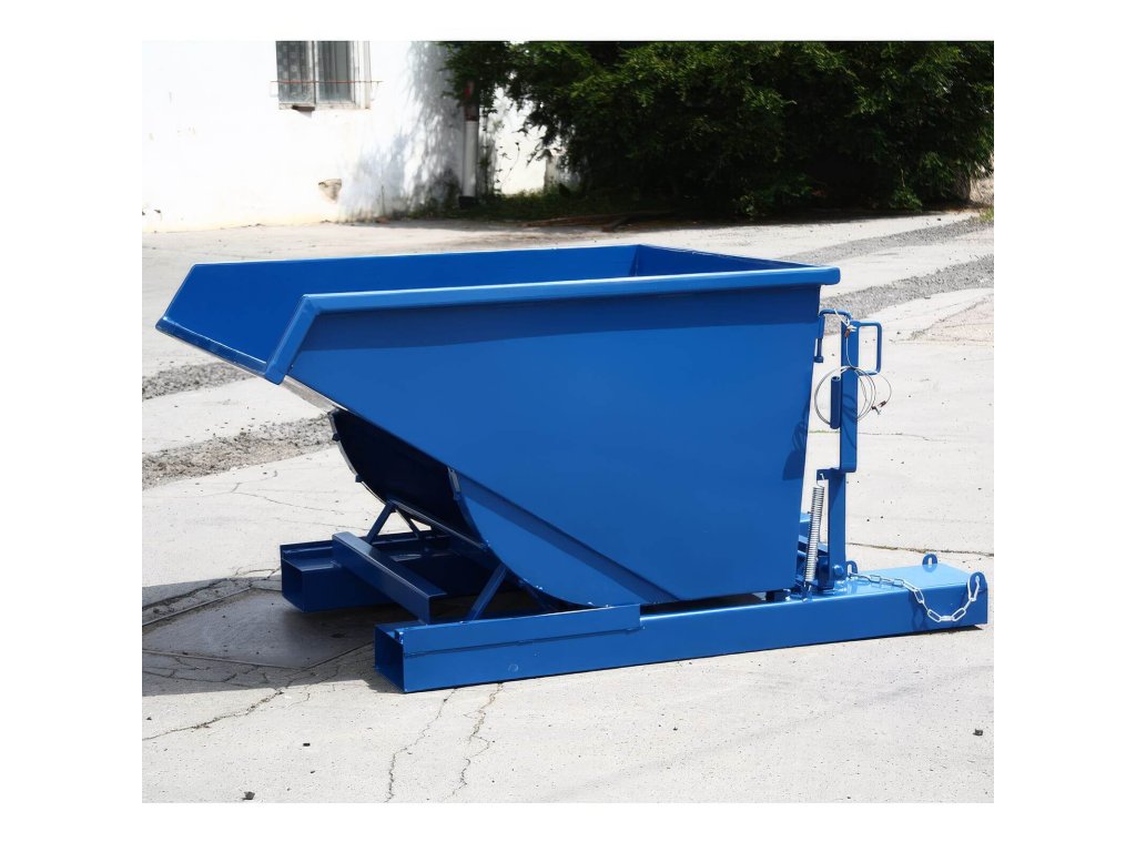 Robustní výklopný kontejner / přepravník určený pro sypké materiály, třísky a špony. Bez víka, bez výpustného kohoutu a bez pojízdného podvozku – jednoduché a ověřené řešení pro bezpečné naložení a vyklopení z VZV. Po vyprázdnění se vana automaticky vrátí do výchozí polohy.