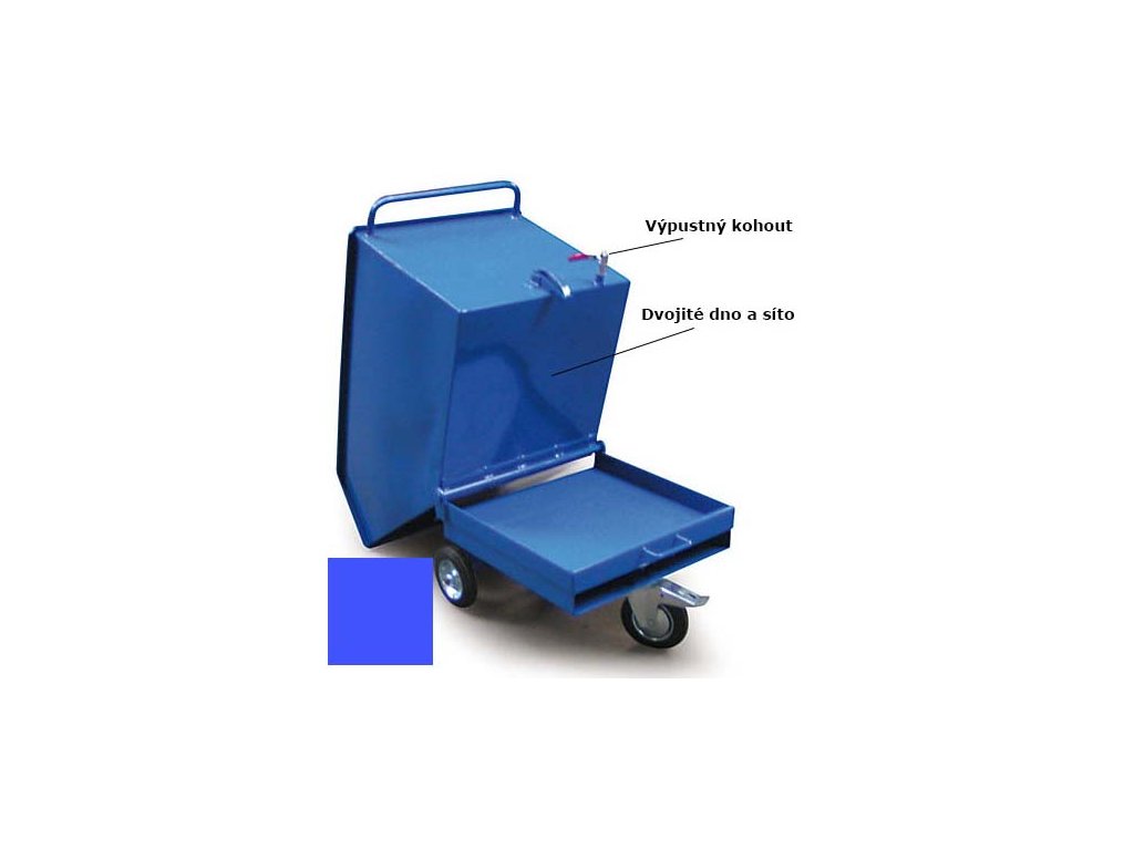 Výklopný vozík na špony, třísky 600 litrů, s dvojitým dnem, sítem a kohoutem, modrý