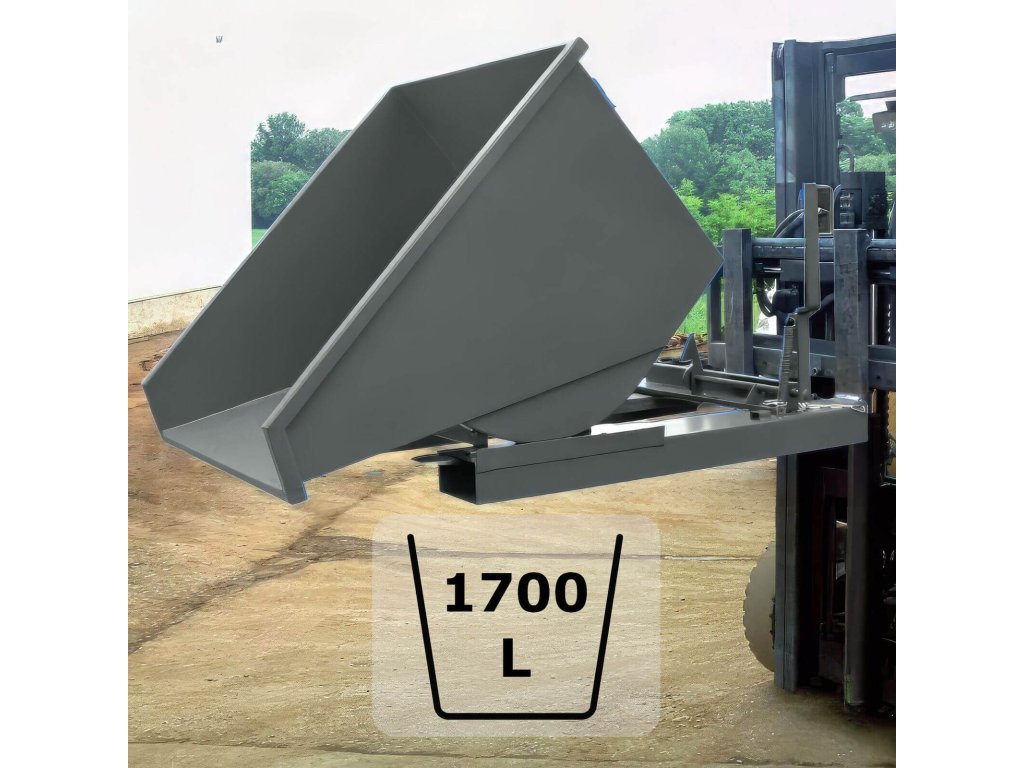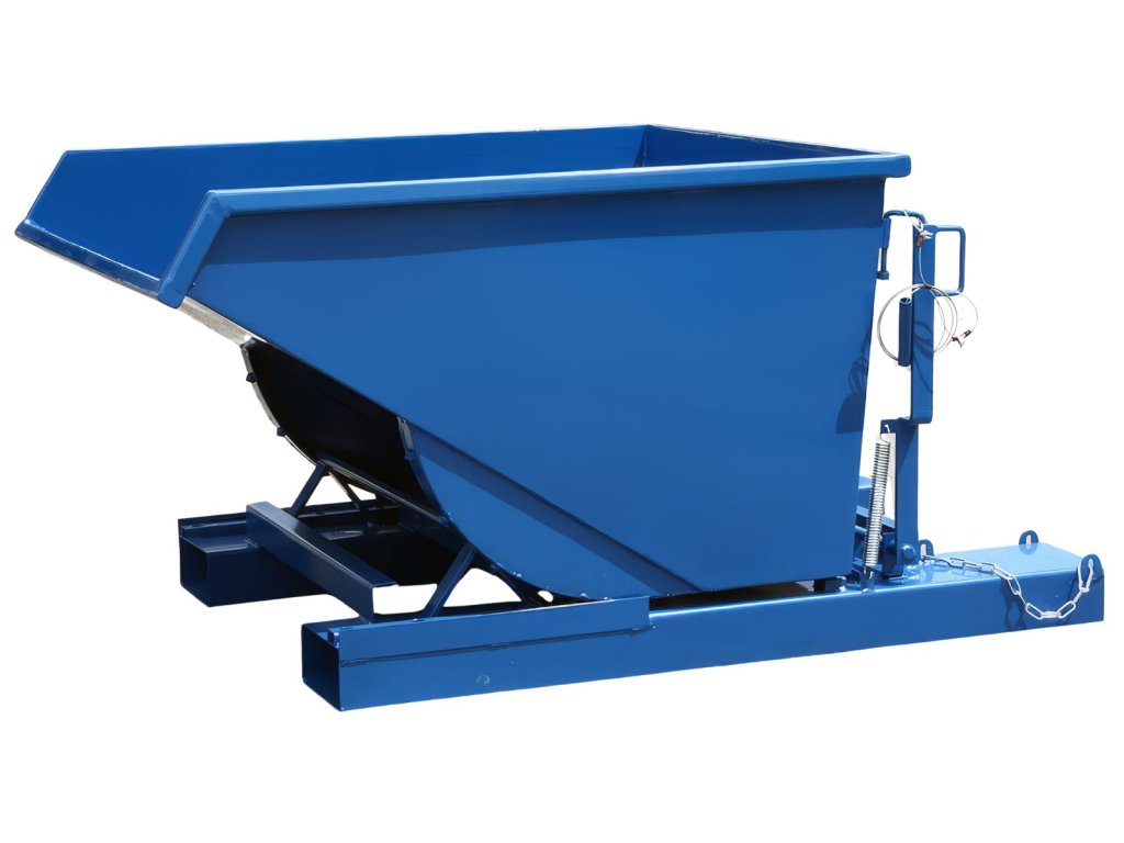 Robustní výklopný kontejner / přepravník určený pro sypké materiály, třísky a špony. Bez víka, bez výpustného kohoutu a bez pojízdného podvozku – jednoduché a ověřené řešení pro bezpečné naložení a vyklopení z VZV. Po vyprázdnění se vana automaticky vrátí do výchozí polohy.