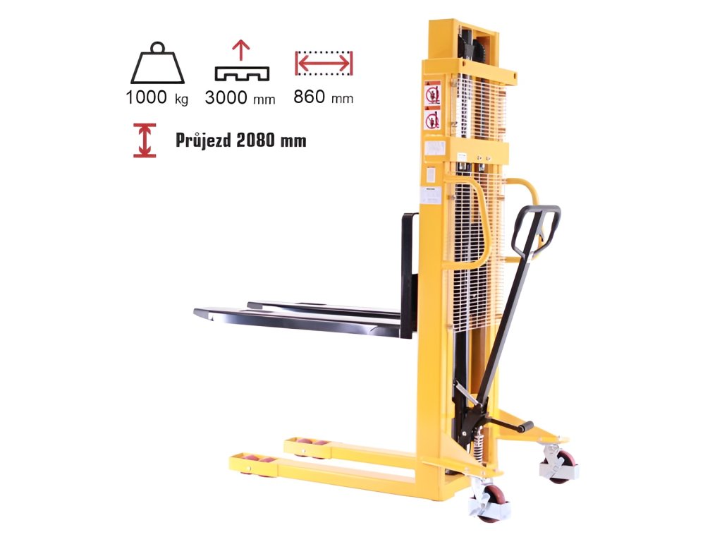 Ruční vysokozdvižný vozík, do 1 000 kg, výška zdvihu 3 000 mm