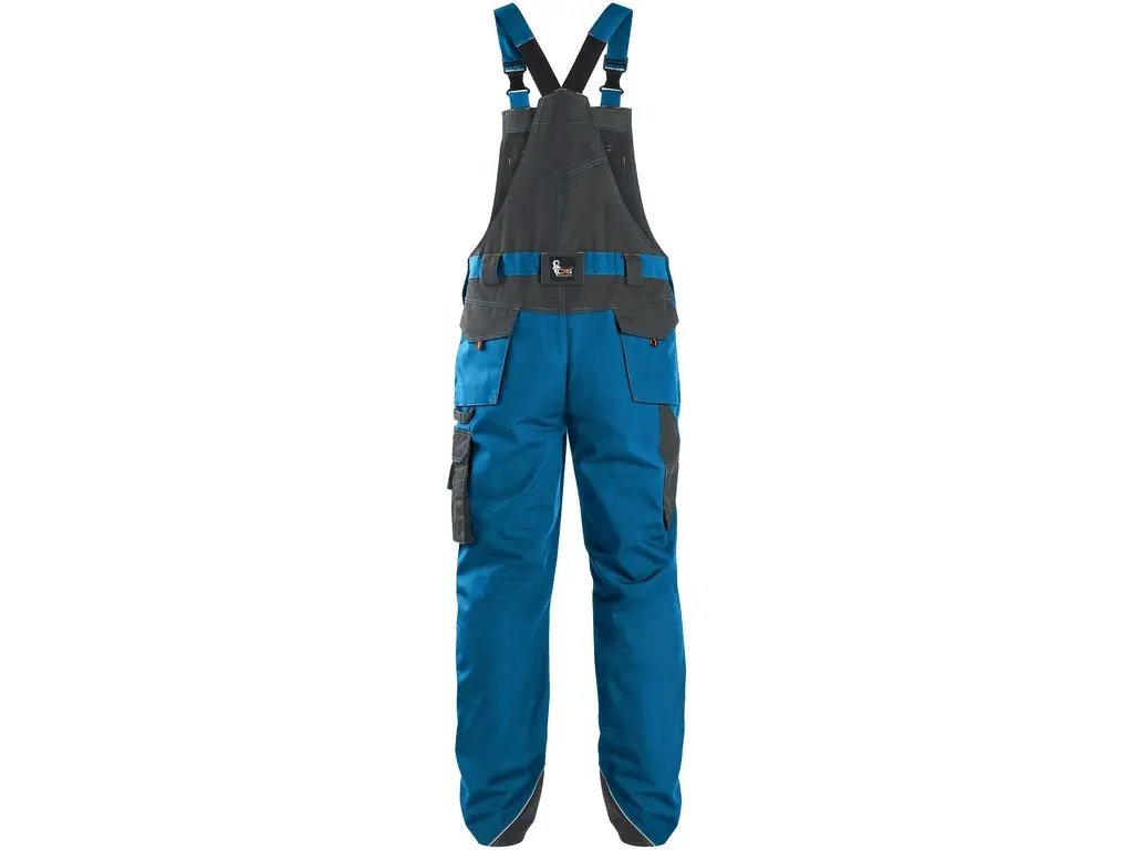 Pánské montérkové kalhoty s náprsenkou, náprsní kapsa s klopou, pas s poutky na opasek, v zadní části guma s knoflíkem pro přizpůsobení velikosti, přední klínové kapsy, multifunkční kapsy na obou stranách, kolena zesílena materiálem 600D polyester s možností vložení kolenních výztuh, dvě zadní kapsy s klopami, spodní část nohavic vyztužena materiálem 600D polyester, šle s gumou vzadu, reflexní doplňky. Doporučené použití: stavebnictví, strojírenství, lehký průmysl, automobilový průmysl, logistika, skladová manipulace, spedice, autoservisy, údržba, montáže, zemědělství, zahrada, hobby.Doplňkové parametry