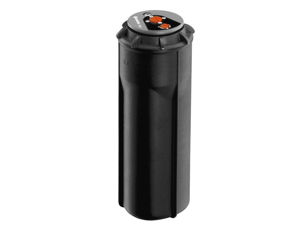 Zavlažovat lze plochy od velmi malých výsečí až po plný kruh. Prostřednictvím paměťové funkce se zavlažovač automaticky vrací na přednastavenou výseč, a to i při úmyslném otočení hlavice zavlažovače. Tím je zaručeno, že bude vždy zavlažována ta správná oblast. Pro flexibilní zavlažování jsou k dispozici čtyři trysky s různým průtokem, které lze pohodlně vybírat na základě jednotlivých zavlažovaných výsečí. To je velmi důležité pro rovnoměrné zavlažování při kombinovaném použití zavlažovačů s různě nastavenými zavlažovanými výsečemi. Integrovaný filtr na nečistoty umožňuje nepřerušovaný provoz. Spolehlivý turbínový převod utěsněný proti průniku písku, zajišťuje dlouhou životnost. Při instalaci vypouštěcího ventilu (č.v. 2760-20) v potrubí je Sprinklersystém odolný proti mrazu. Spojení je provedeno prostřednictvím 3/4" vnitřního závitu.
